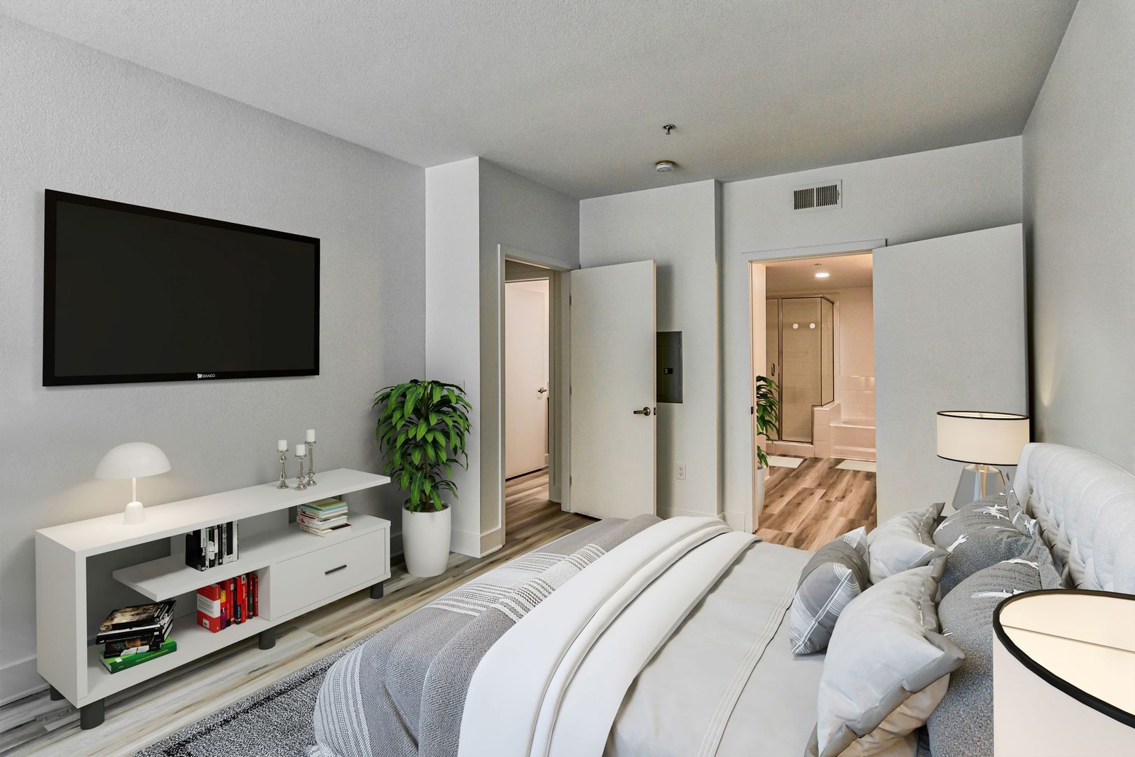Originally built as condominiums, our 2 bedroom 2 bathroom units boast high quality finishes including enhanced soundproofing, modern fixtures, granite countertops, smart thermostats, built in blue tooth speakers in bathrooms, LED lighted vanity mirrors, bidets and wood style flooring. With an open floorplan and large kitchen island, this home is perfect for entertaining or whipping up your favorite dishes in your spacious kitchen.  Our serene suburban location will offer you a quiet oasis to call home, while enjoying the convenience of downtown living only blocks away from plenty of dining and shopping on Brand Boulevard.