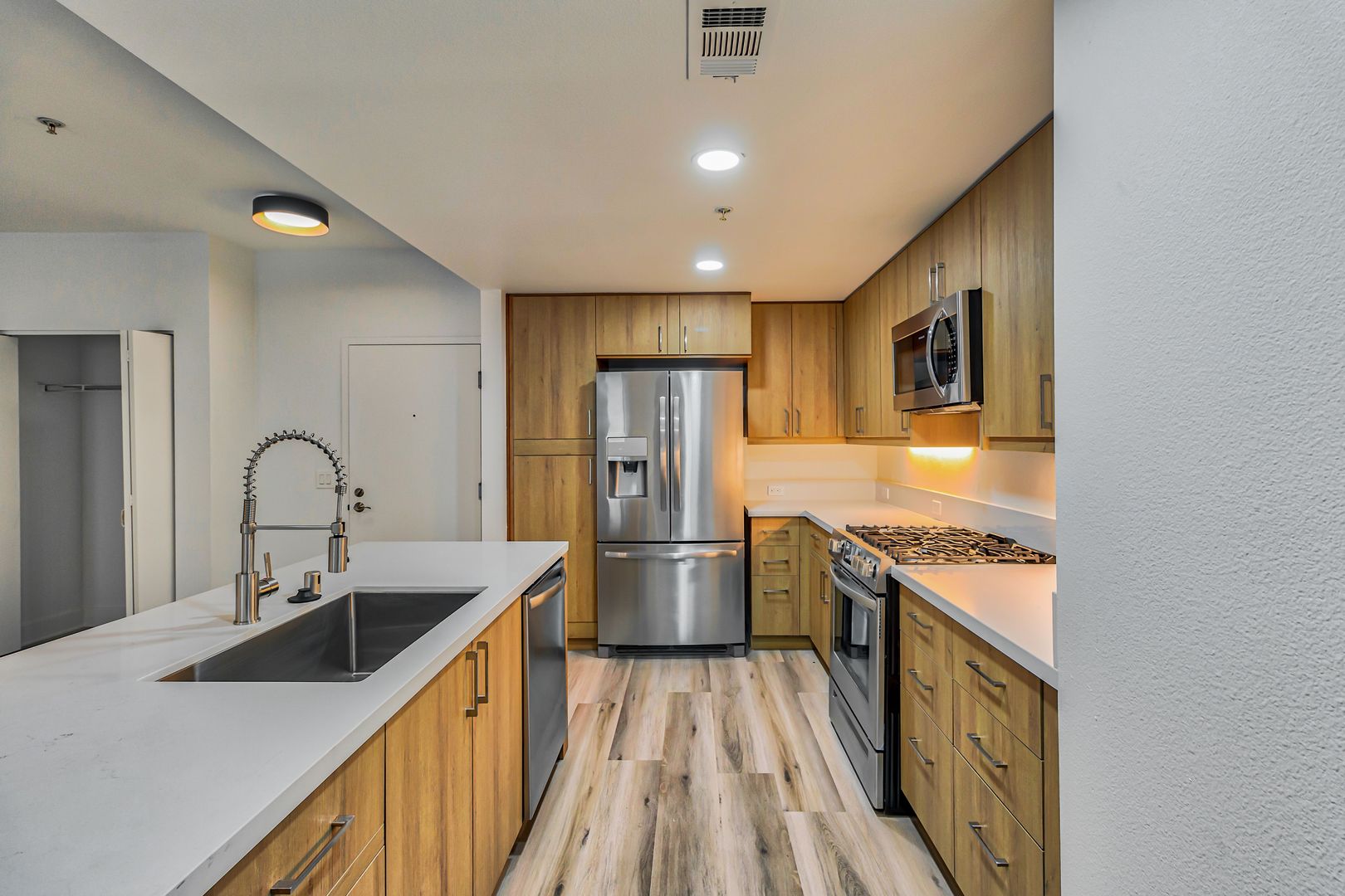 Originally built as condominiums, our 2 bedroom 2 bathroom units boast high quality finishes including enhanced soundproofing, modern fixtures, quartz countertops, custom cabinetry, smart thermostats, built in blue tooth speakers in bathrooms, LED lighted vanity mirrors, bidets and wood style flooring. This open floorplan with large kitchen island is perfect for entertaining or whipping up your favorite dishes in your spacious kitchen. Our serene suburban location will offer you a quiet oasis to call home, while enjoying the convenience of downtown living only blocks away from plenty of dining and shopping on Brand Boulevard.