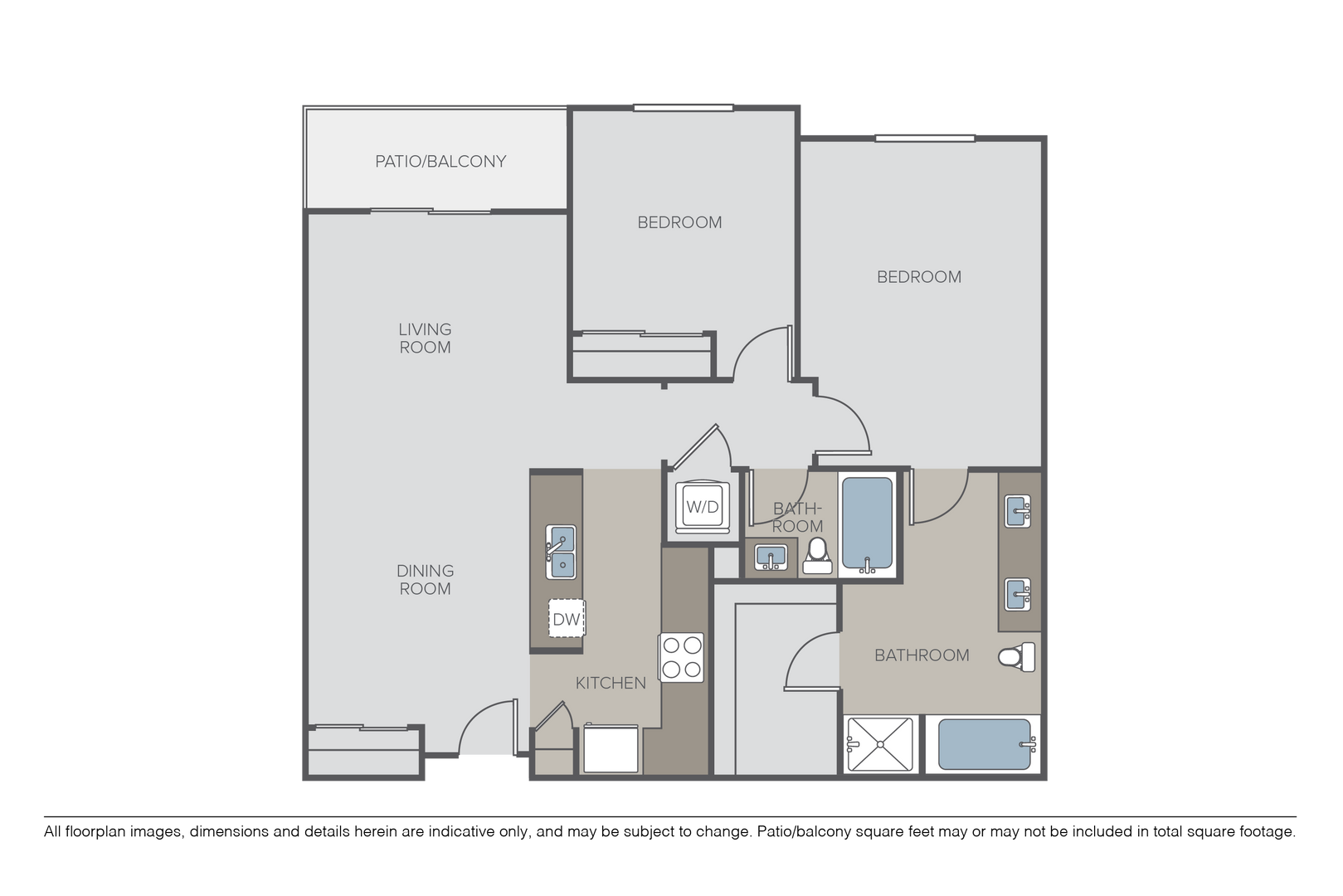 2 Bedroom 2 Bath 1141 SF Apartment with Quartz Countertops & Custom Cabinetry